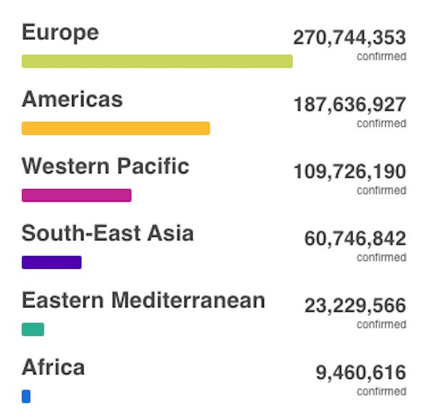 There are fewer people in the Americas than there are in the African Region, but there were 16 times as many deaths and 20 times as many cases in the Americas when compared to Africa.