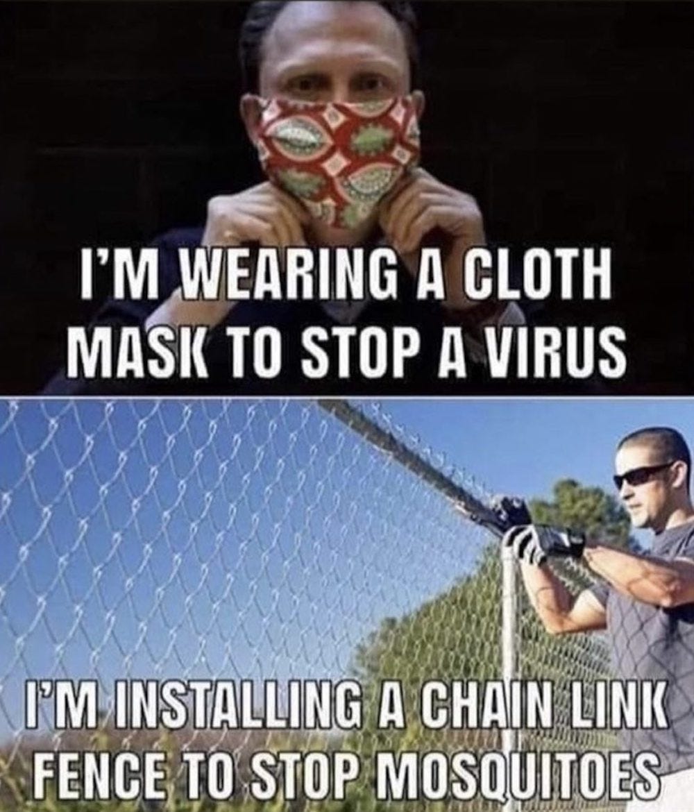 Wallmart greeter, Sir Sir excuse me but we have a mask requirement. Me, OMG you have dirty air, have you not installed a proper ventilation system.
