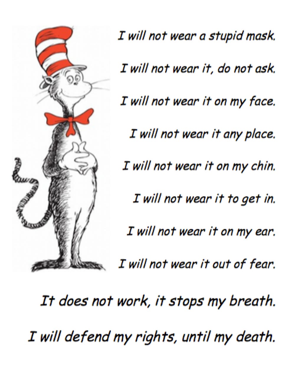 NO MUZZLING STIFLING MASK MANDATES! NO FORCED VACCINES! END TORTUROUS DEVASTATING LOCK DOWNS NOW! I WANT MY LIFE BACK.