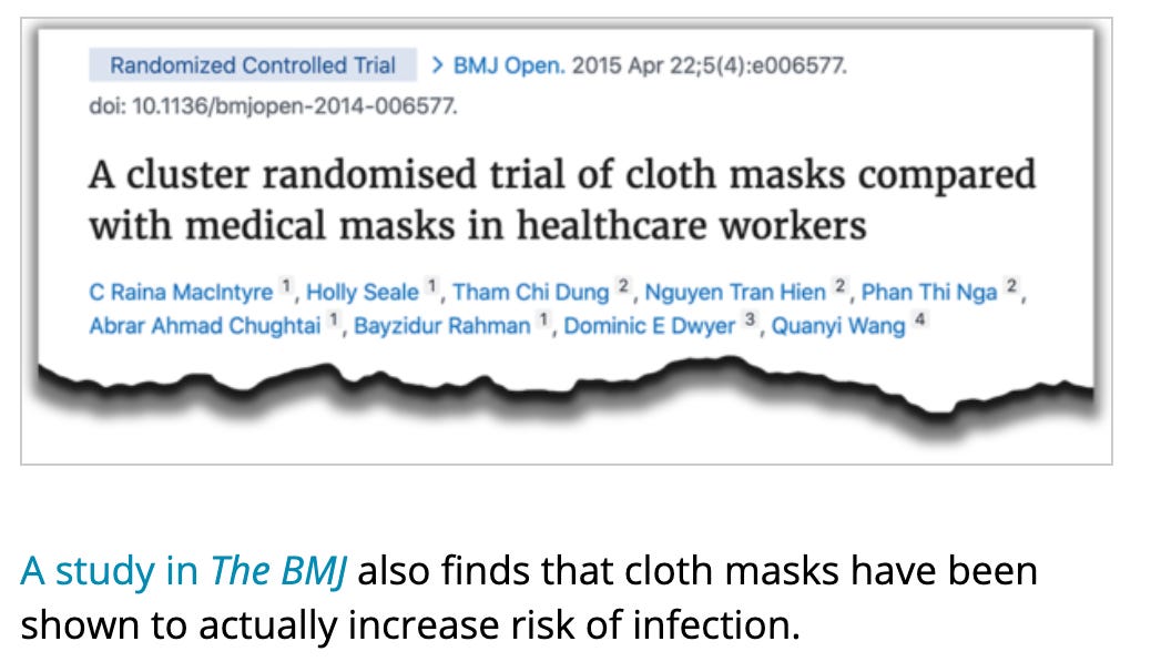Below are dozens of published studies providing directly-relevant evidence that face masks do NOT inhibit the spread of respiratory viral infections.