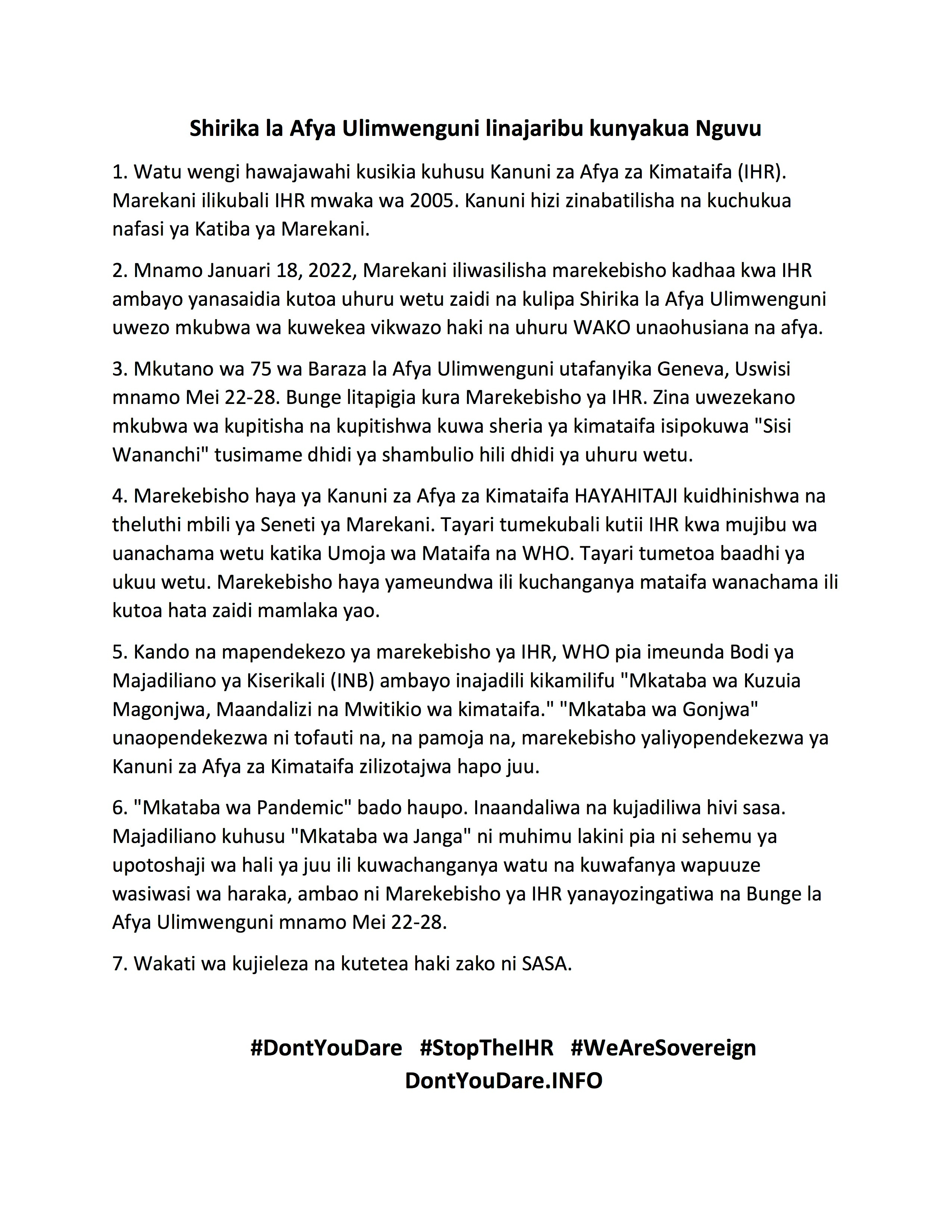 The PDF below is a spectacular analysis of the proposed amendments to the International Health Regulations: