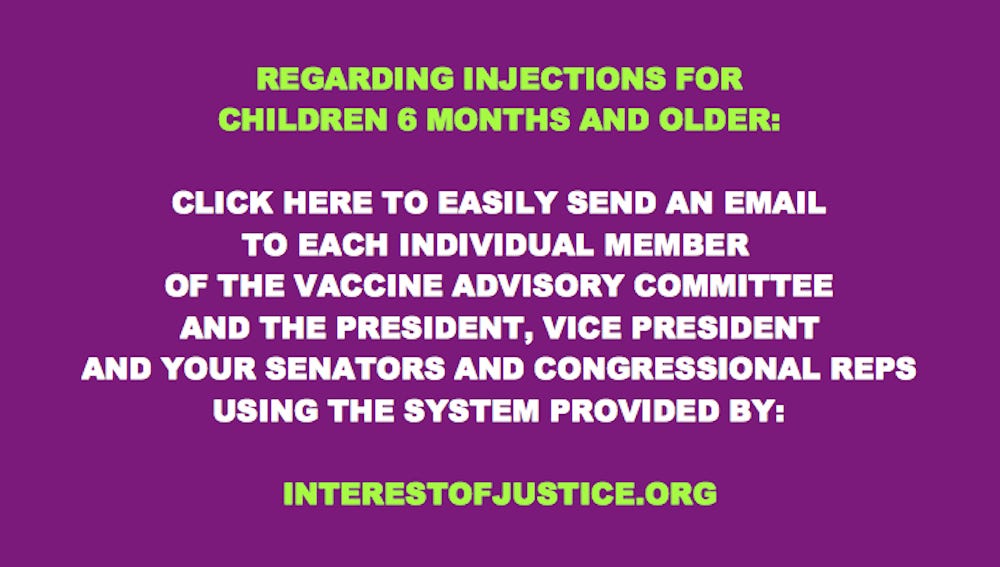 If you vote to authorize for emergency use either the Pfizer-BioNTech or Moderna injections for use during the upcoming meetings on June 14-15, 2022, HISTORY WILL HOLD YOU PERSONALLY RESPONSIBLE FOR HEINOUS CRIMES AGAINST HUMANITY.