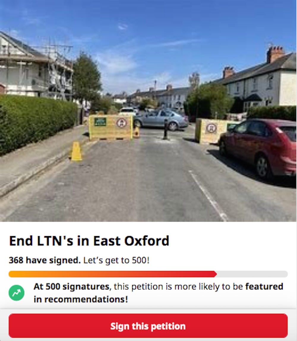The town is already quite radial with poor parking and most people already walk/bike to shops within their arm of the city when they can or head out to the major supermarkets on the ring road; you don’t drive through Oxford unless you can’t help it, and there are already four major park and ride car parks on the ring road from which people bus into the centre. Looking at the roads they are blocking, this appears to me to be a first step in completely isolating the various parts of Oxford from each other for little real purpose (other than causing a few people major inconvenience) rather than anything to do with redirecting cars from the city centre – the latter was done two decades ago. I suspect Oxford has been chosen because it already works like a 15 minute city and will be held up to the world as a successful implementation of this great idea. (It will also cause chaos on the ring road from what I can see which will have the added “benefit” of isolating Oxford from the rest of the county.)