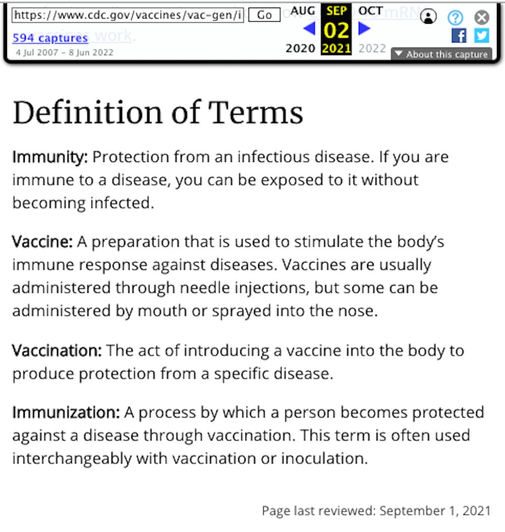 The old CDC definition of a “vaccine” on September 1, 2021: