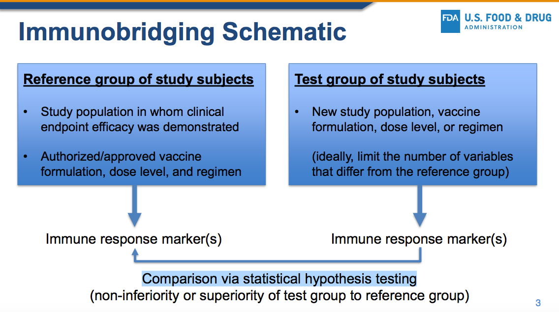 IT DOES NOT MATTER whether or not the FDA, the medical establishment or the scientific community accepts immunobridging as a proxy for true clinical proof of disease prevention because immunobridging is NOT LEGALLY APPROVED.