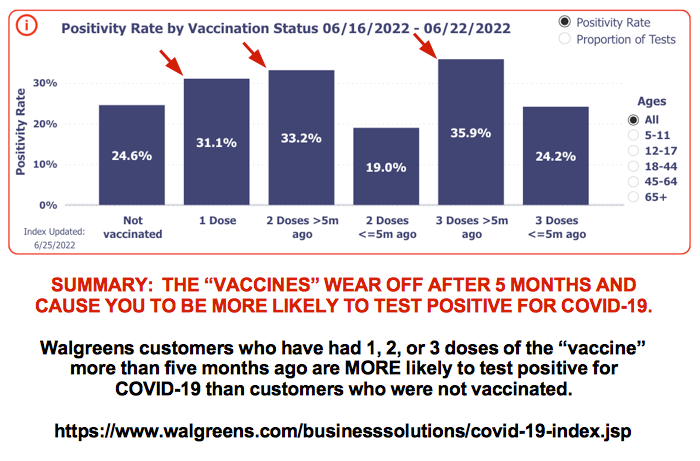 The Moderna study only measured antibody levels two months after the second dose — the time period when the antibody levels are at their peak (what Berenson calls “the happy valley”). But real world experience with these vaccines shows that any efficacy quickly wanes to zero by six months and then goes NEGATIVE after that.