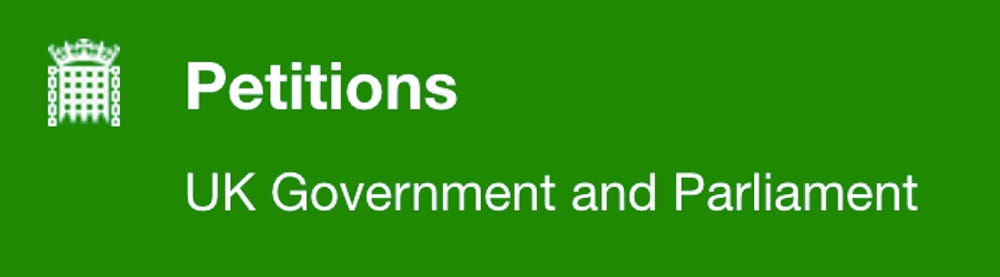 As of 16 May 2022 (less than two weeks after it was first circulated), Parliamentary Petition #614335 had received over 100,000 signatures, which should have caused a public debate to be scheduled in the House of Commons A LONG TIME AGO!