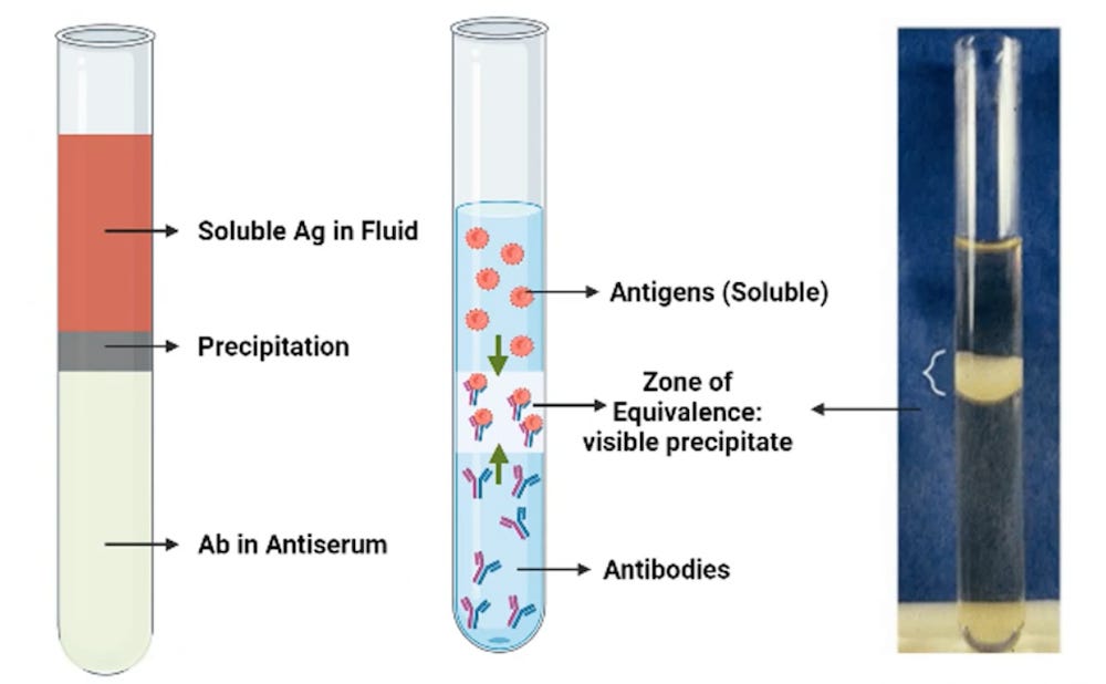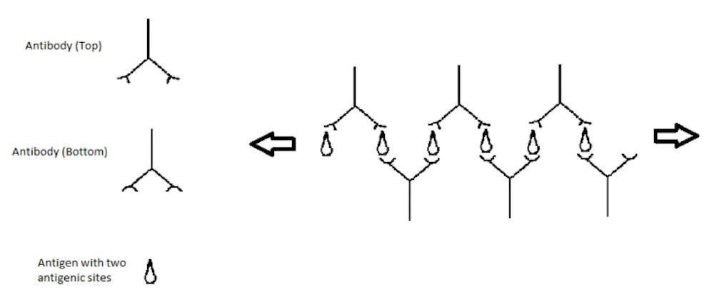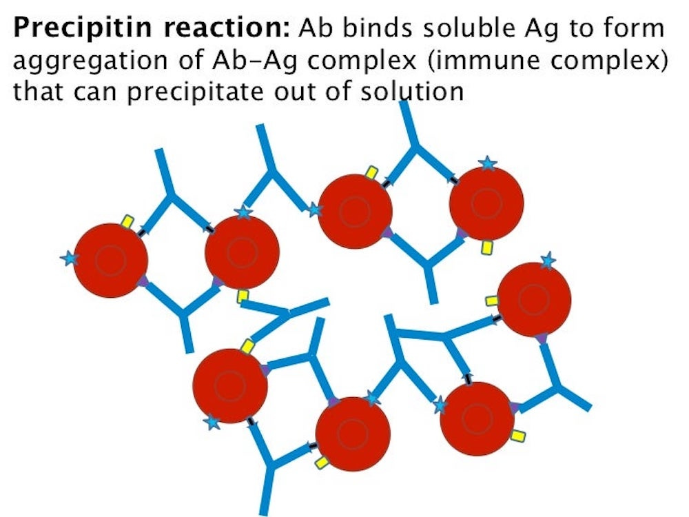 It is a fundamental principle of immunology that when antibodies (Ab) are in the presence of antigens (Ag), the antibody-antigen complex can form cross-links and become large enough to precipitate out of solution.