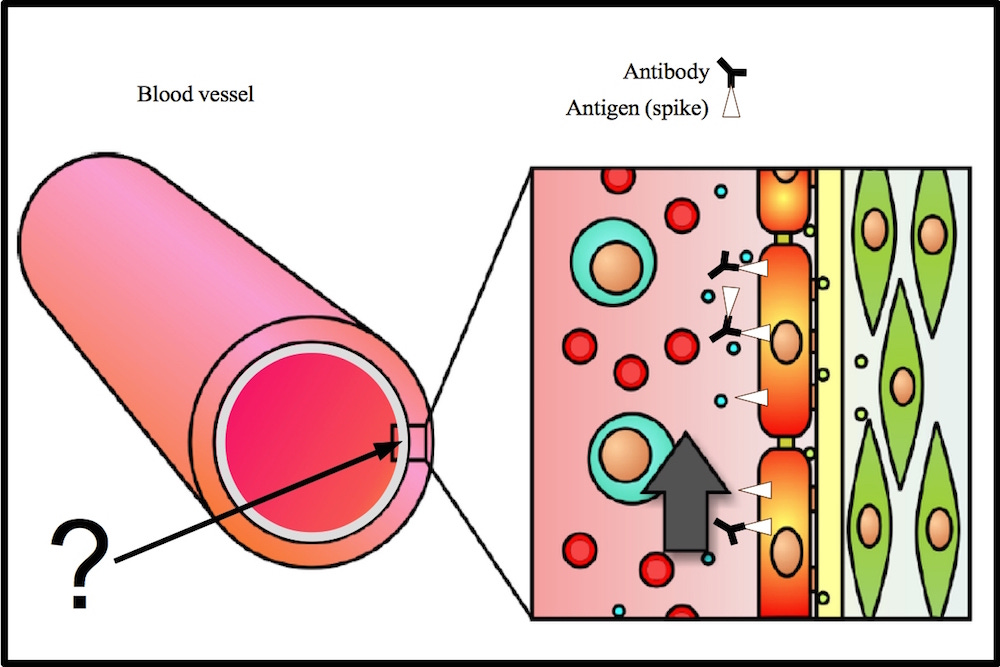 Is it possible that immune complexes (spike protein + antibodies) can form on the lining of arteries? Is it likely? Is it almost a certainty?