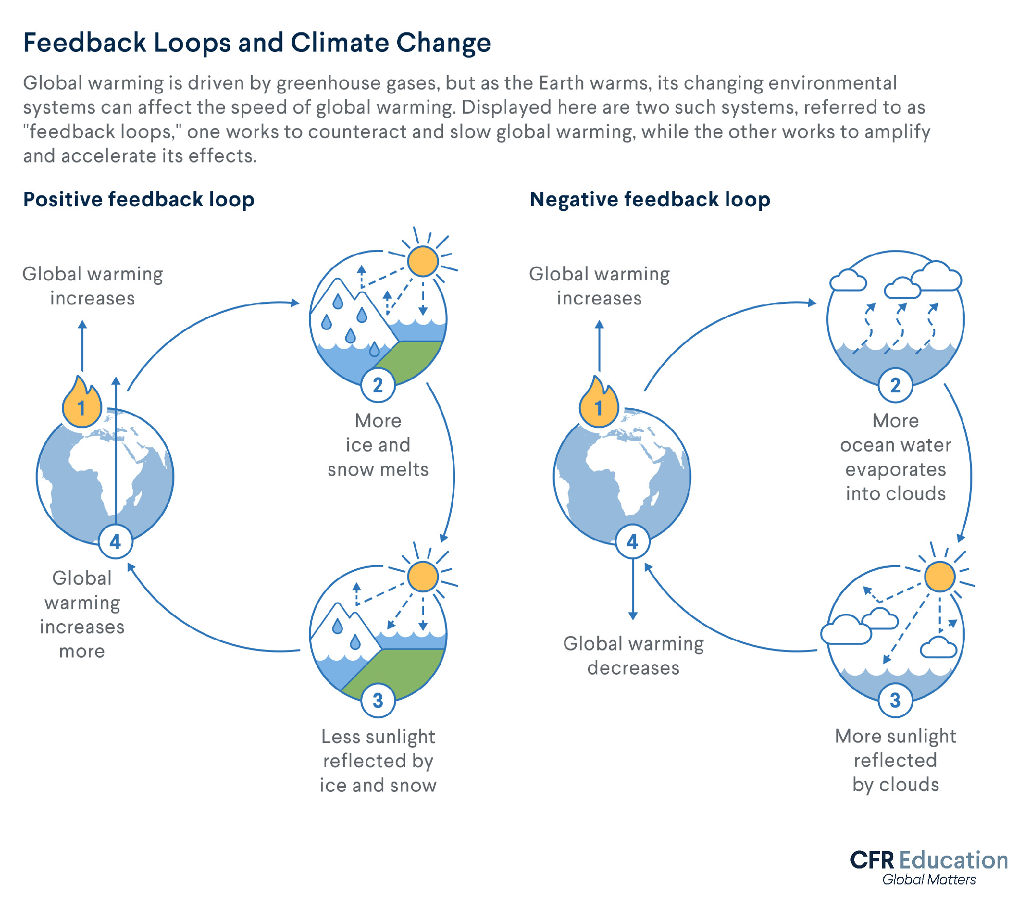 Positive Feedback Loop: Higher temperatures caused by this water vapor increase the atmosphere’s ability to hold moisture, leading to more water vapor, accelerating the warming.
