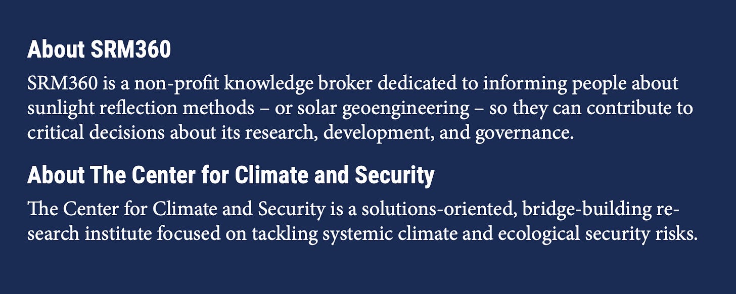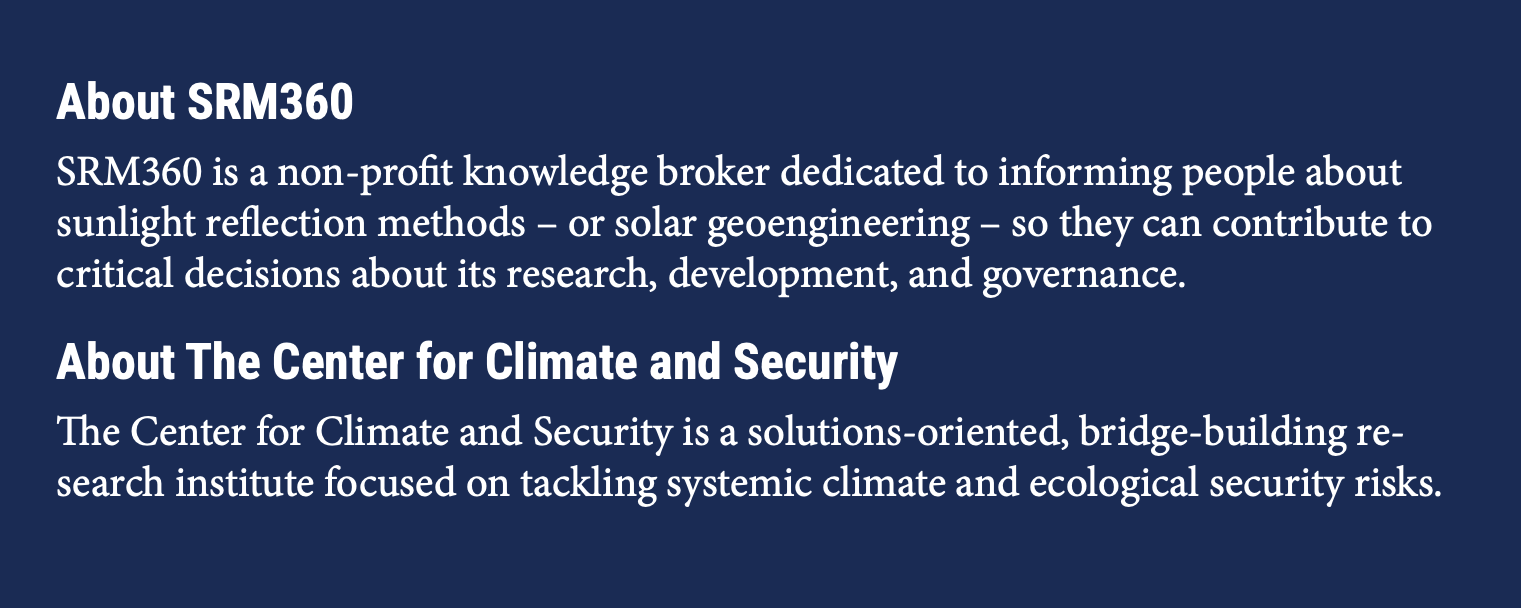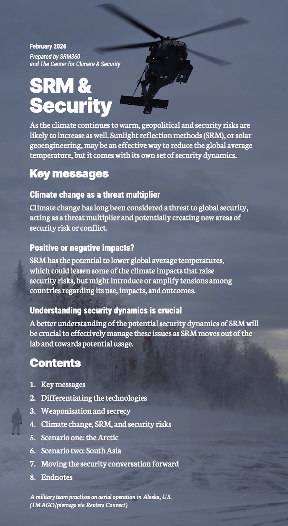 Join SRM360 for a live discussion on the geopolitical and security risks of climate change and solar geoengineering.