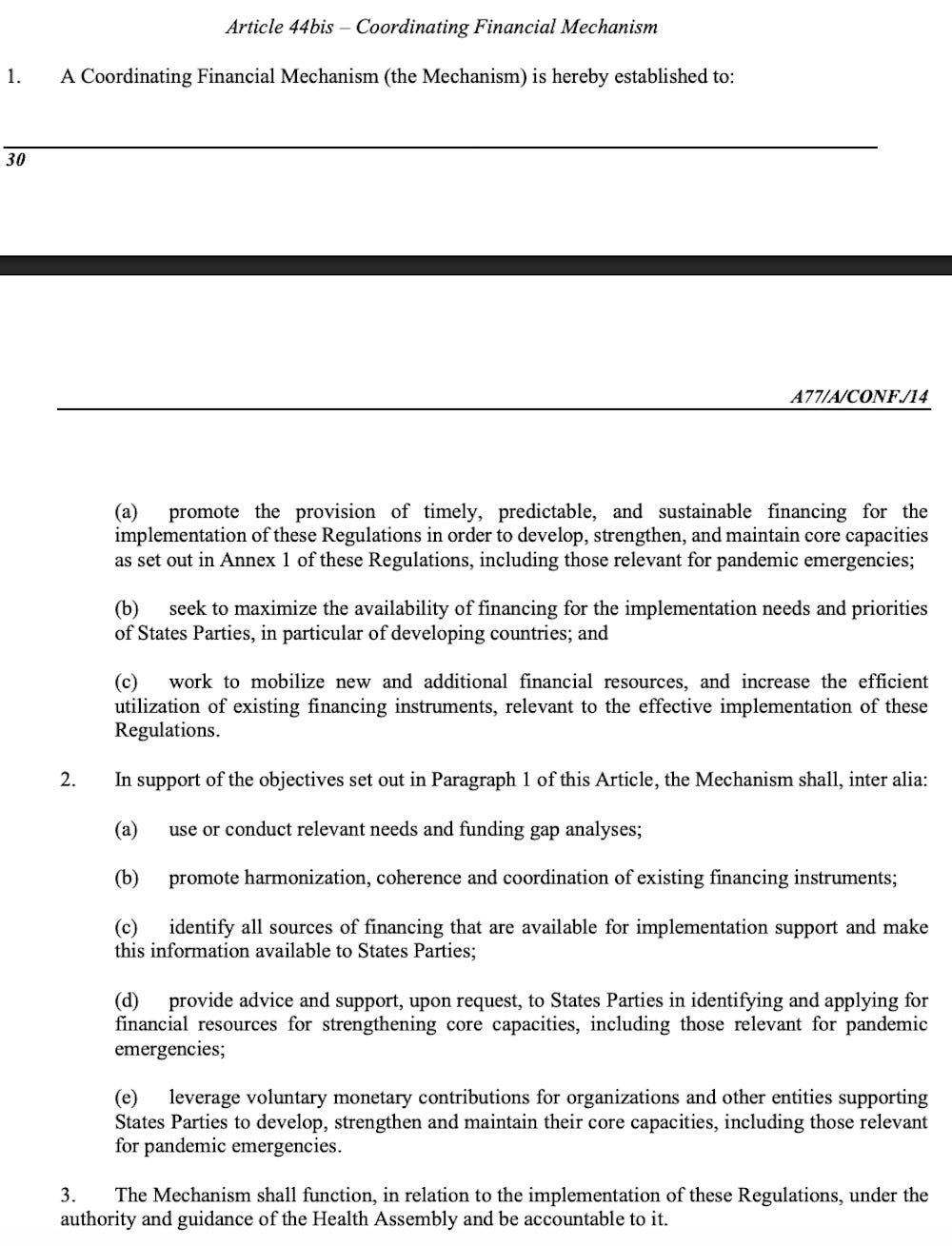 The text below is from Article 44bis of the 2024 amendments to the International Health Regulations that must be rejected by July 19, 2025.