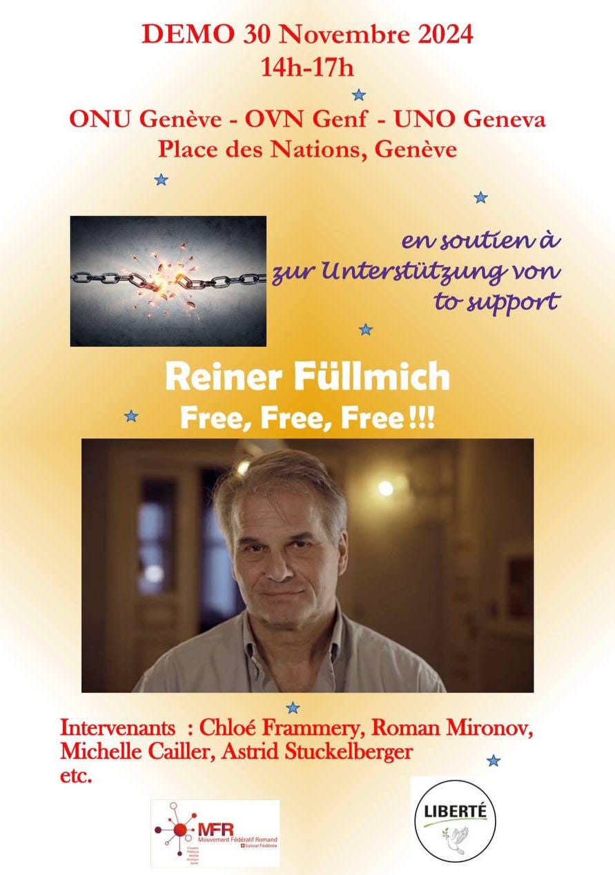 If you live near Geneva, please attend the rally to support Reiner Fuellmich on Saturday November 30, 2024.