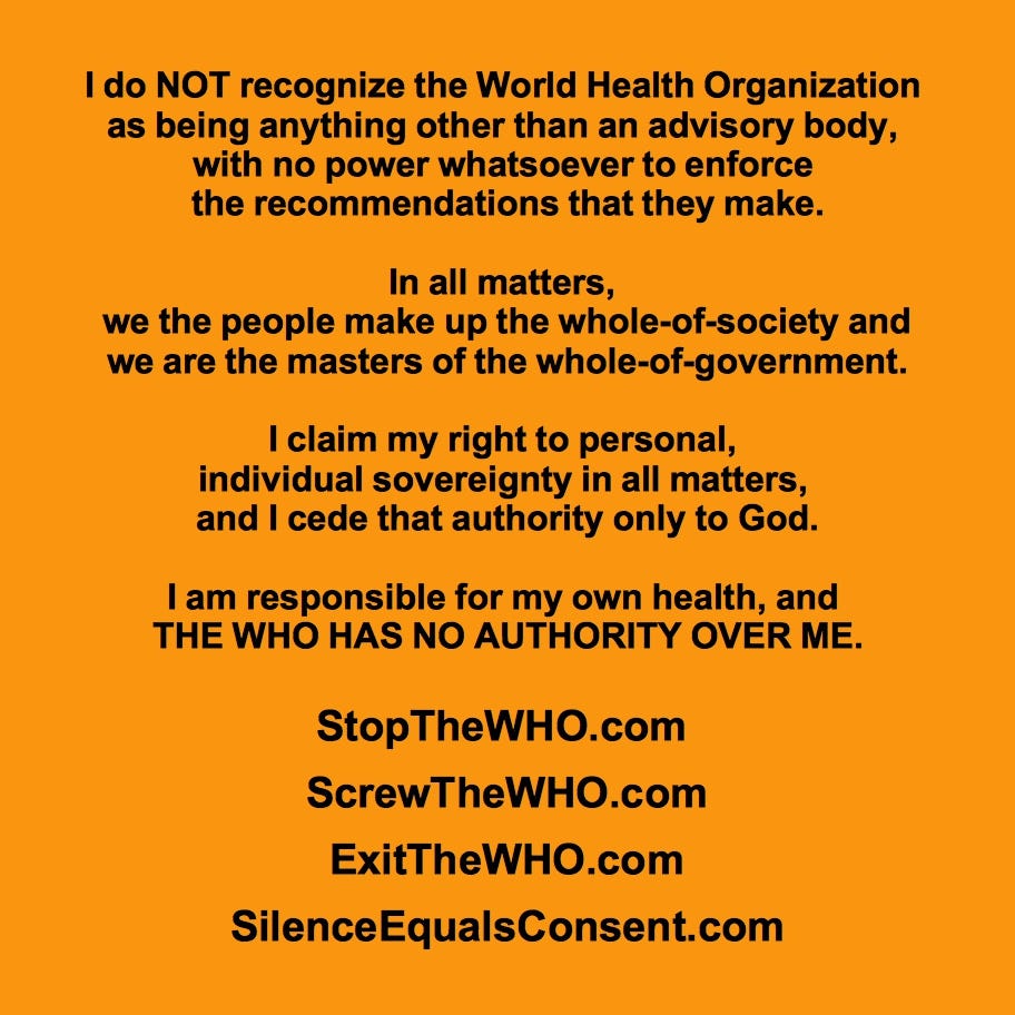 The purpose of this article is to encourage everyone on earth to speak up and speak their mind regarding the proposed amendments to the International Health Regulations and the proposed “Pandemic Treaty” as well as your feelings regarding #ExitTheWHO.