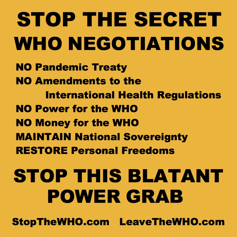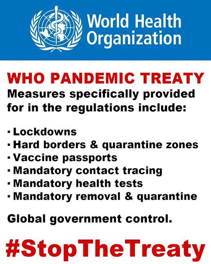 No pandemic treaty. NO to the WHO. Thank you.