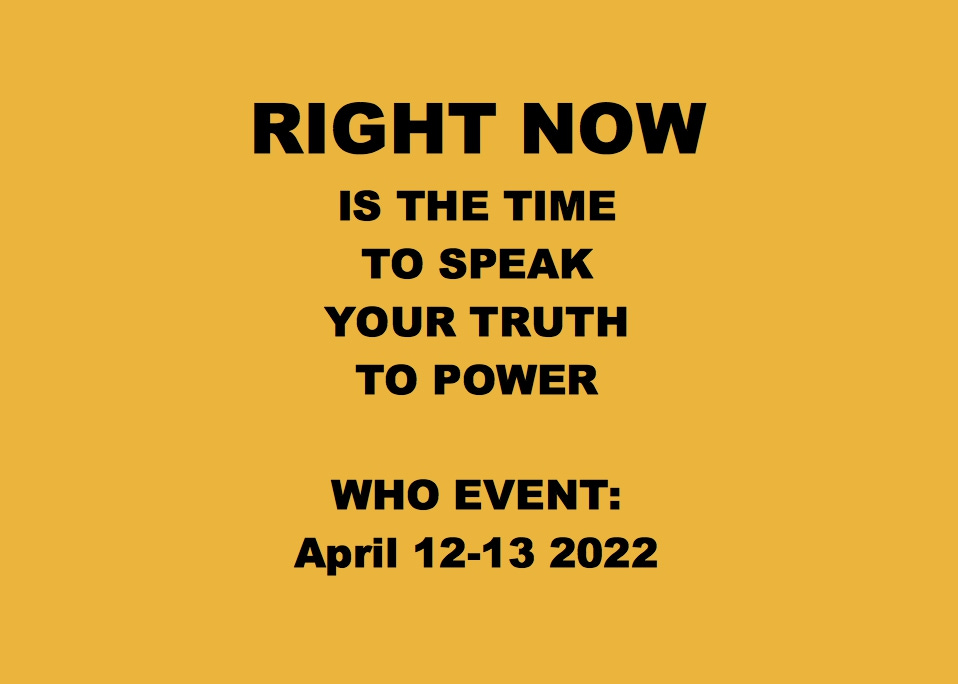 I realize that neither the Intergovernmental Negotiating Body nor the United States delegation to the World Health Assembly is likely to listen to or act upon any of our recommendations, but IT IS STILL EVERYONE’S OBLIGATION TO MAKE THE EFFORT TO SPEAK THEIR TRUTH TO POWER BEFORE THE APRIL 29, 2022 DEADLINE.