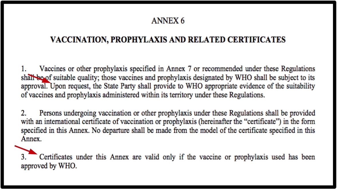 THERE IS NO LEGAL DEFINITION OF A “VACCINE” IN THE INTERNATIONAL HEALTH REGULATIONS.