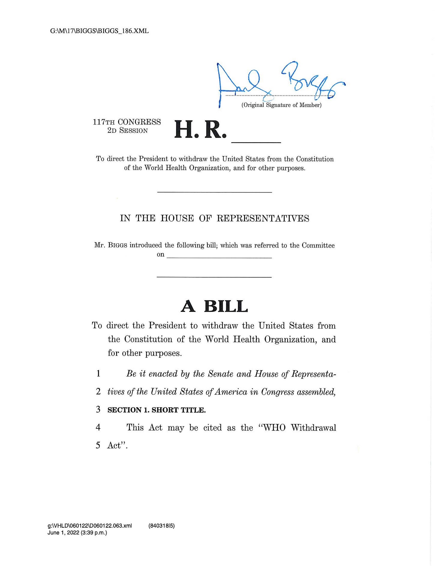 It is my understanding that the U.S. delegation to the World Health Organization is currently involved in negotiations to draft an international “Pandemic Treaty” as well as amendments to the International Health Regulations.
