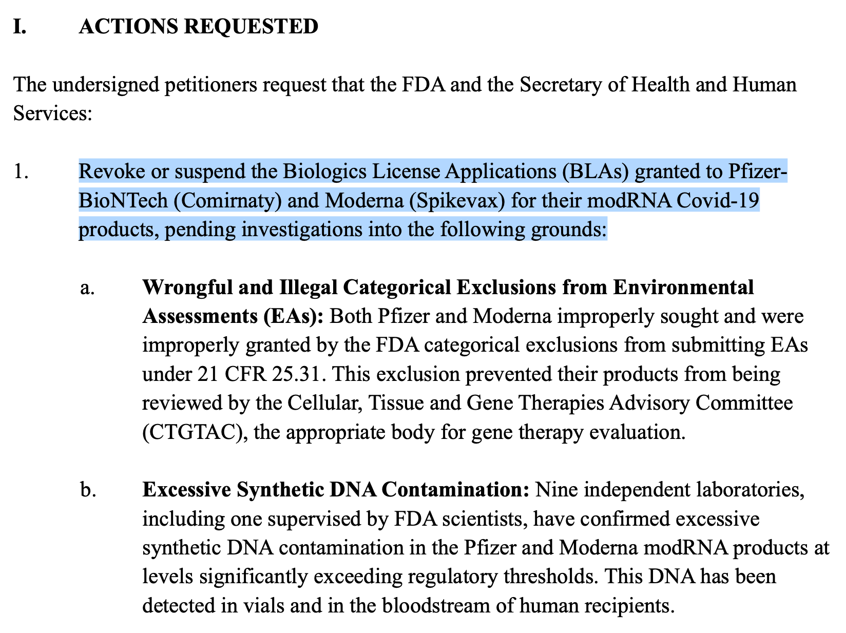 Katie Ashby-Koppens of PJ O’Brien & Associates submitted a Citizen Petition to the FDA on January 21, 2025 on behalf of Julian J. Gillespie, Kevin McKernan, David J. Speicher, Jessica Rose, and L. Maria Gutschi, requesting that the licenses and authorizations for the Pfizer-BionTech and Moderna mRNA products be REVOKED.