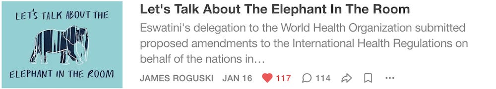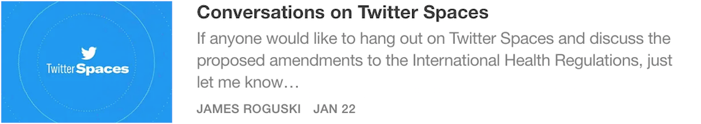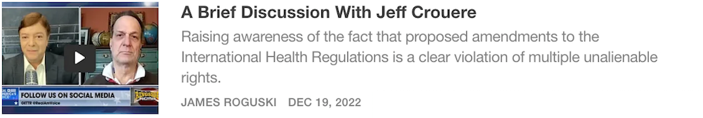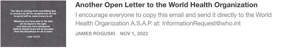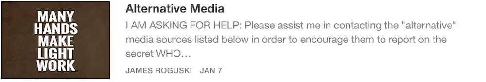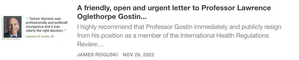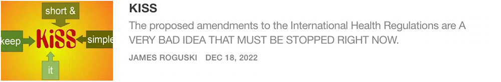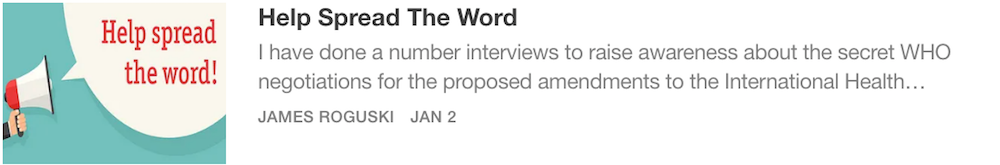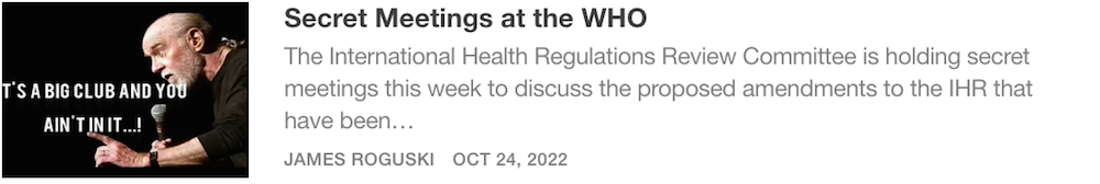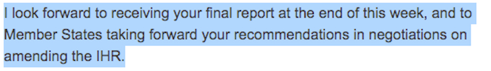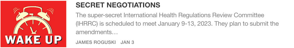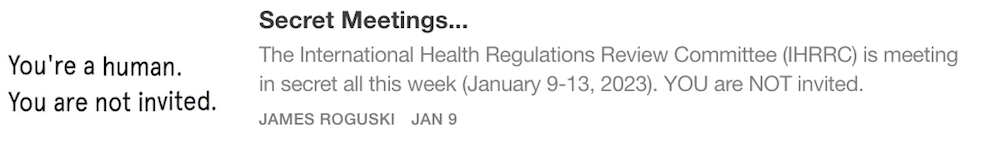 I just wanted to say that I really appreciate the FACT that you brought some much needed attention to the secret/confidential meetings that have been conducted by the International Health Regulations Review Committee (IHRRC). Thank you!