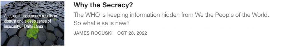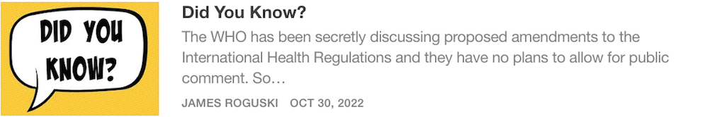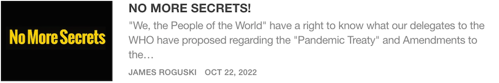 because last year, the WHO kept the proposed amendments that had been submitted by the Biden Administration absolutely secret until April 12, 2022, with less than 6 weeks to go before the start of the 75th World Health Assembly from May 22-28, 2022.