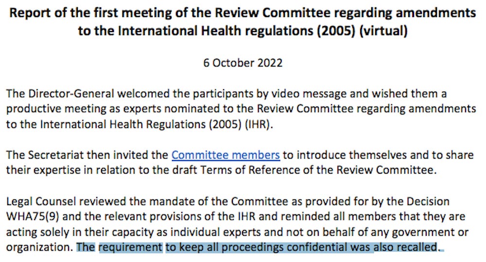 Of course, it was not a “secret” that the meetings of the International Health Regulations Review Committee (IHRRC) were scheduled to occur.