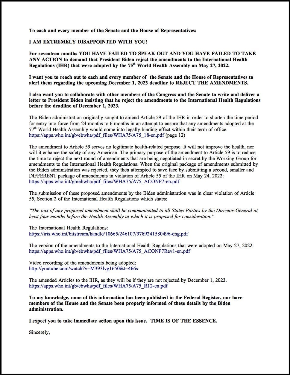 December 1, 2023 is the deadline for heads of state around the world to REJECT the amendments to the International Health Regulations that WERE ADOPTED on May 27, 2022.