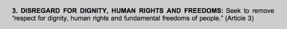 The IHRRC did not specifically address the types of “recommendations” that are listed in Article 18 (see below), they did raise concerns regarding articles 1, 13A and 42 that directly relate to the concept of changing non-binding “recommendations” to obligations.