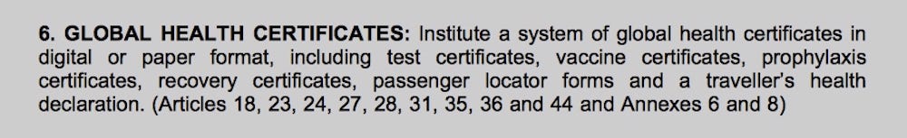 It is unclear how the specifications and requirements for such “other types of proofs and certificates” would be formulated and by whom, since the proposal only mentions a possibility for the Health Assembly to design and approve such certificates. It is also unclear whether “substitutes for” and “complementary to” are to be used interchangeably. This matters because the meaning is different. The proposal that such certificates may include test certificates and recovery certificates should be read in conjunction with the proposed amendments to Article 23, paragraph 1(a), introducing laboratory tests and/or information on vaccination as part of the information that may be required of travellers.