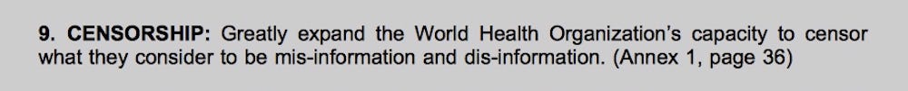 The IHRRC did not specifically address the proposed amendment regarding increased censorship powers for the WHO in Annex 1, but they did state the following:
