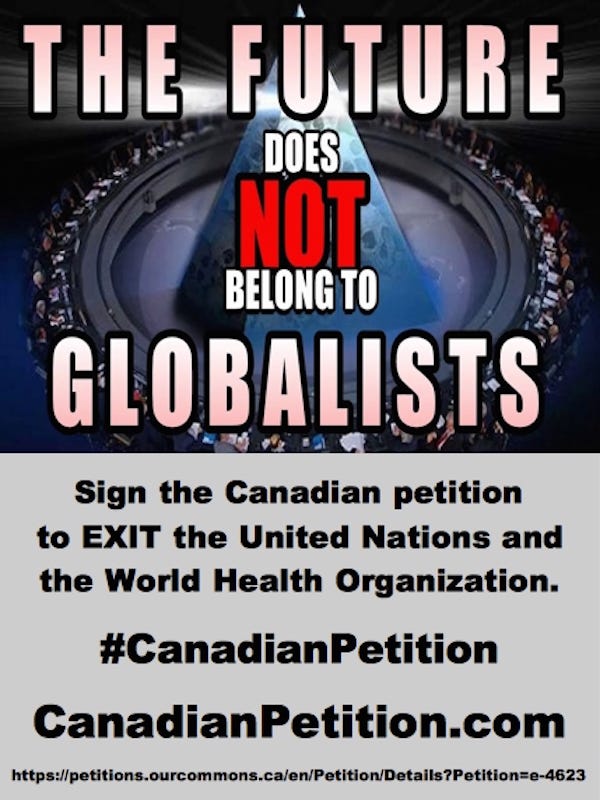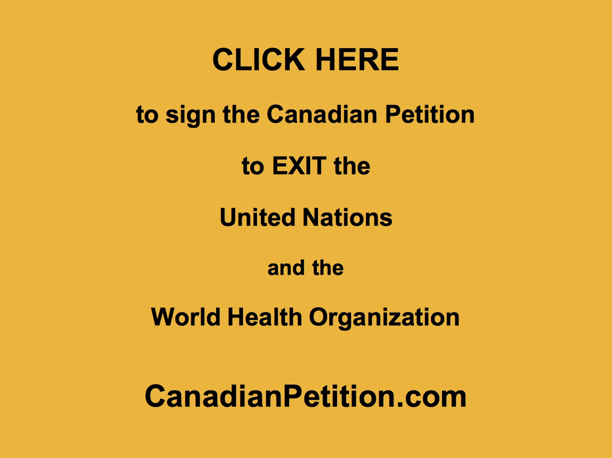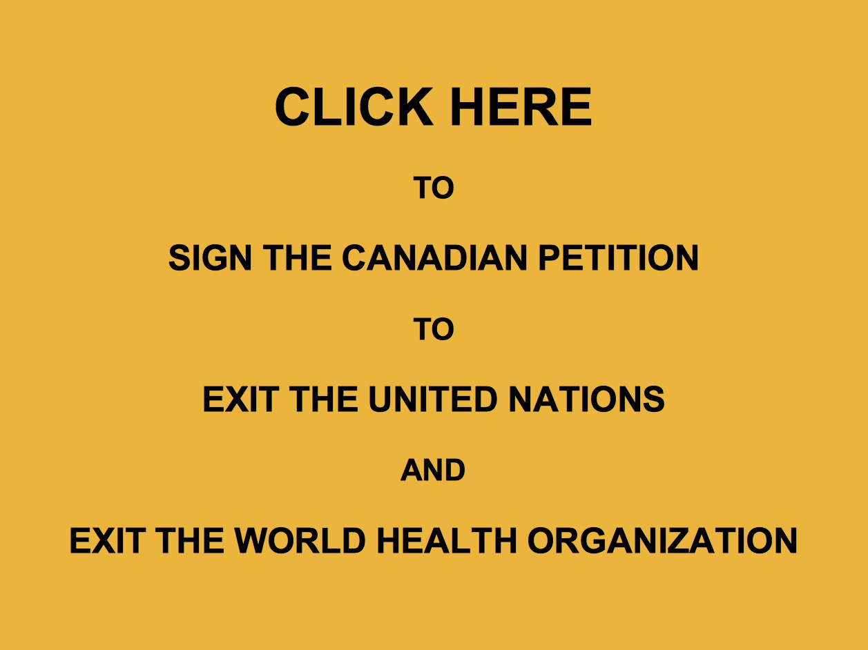 The brave and honourable people of Canada are encouraged to sign this official Parliamentary petition (#4623) to have Canada EXIT the United Nations and EXIT the World Health Organization.