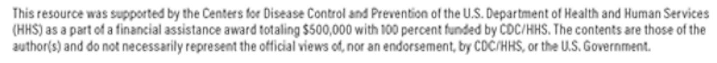 This resource was supported by the Centers for Disease Control and Prevention of the U.S. Department of Health and Human Services (HHS) as a part of a financial assistance award totaling $500,000 with 100 percent funded by CDC/HHS. The contents are those of the author(s) and do not necessarily represent the official views or, nor an endorsement by CDC/HHS, or the U.S. Government.