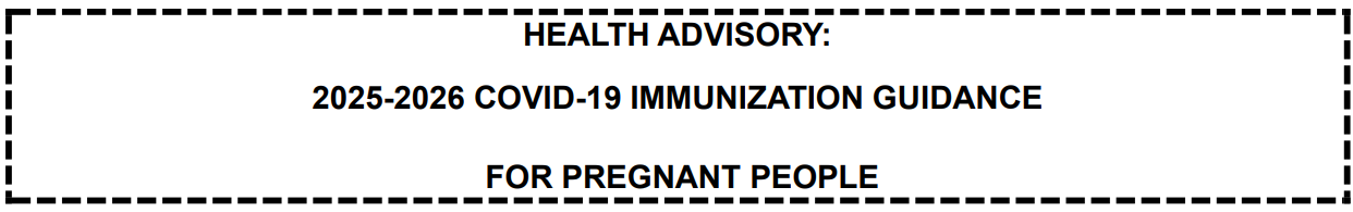 These recommendations are aligned with the COVID-19 vaccination recommendations issued by the American College of Obstetricians and Gynecologists in August 2025, a nationally recognized authority on health care for adults, including pregnant people. Additional information, about the American College of Obstetricians and Gynecologists’ recommendations and relevant clinical considerations can be found here.