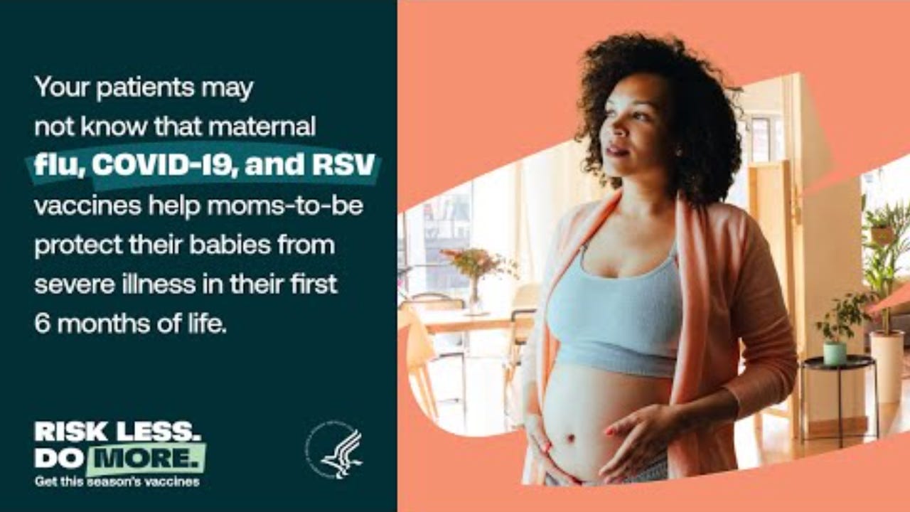 The Department of Health and Human Services is actively LYING to the American public by encouraging and funding the promotion of false and misleading advertising that advocates the injection of pregnant women with the COVID-19 “vaccines” in order to protect their newborn infants during the first 6 months of life.