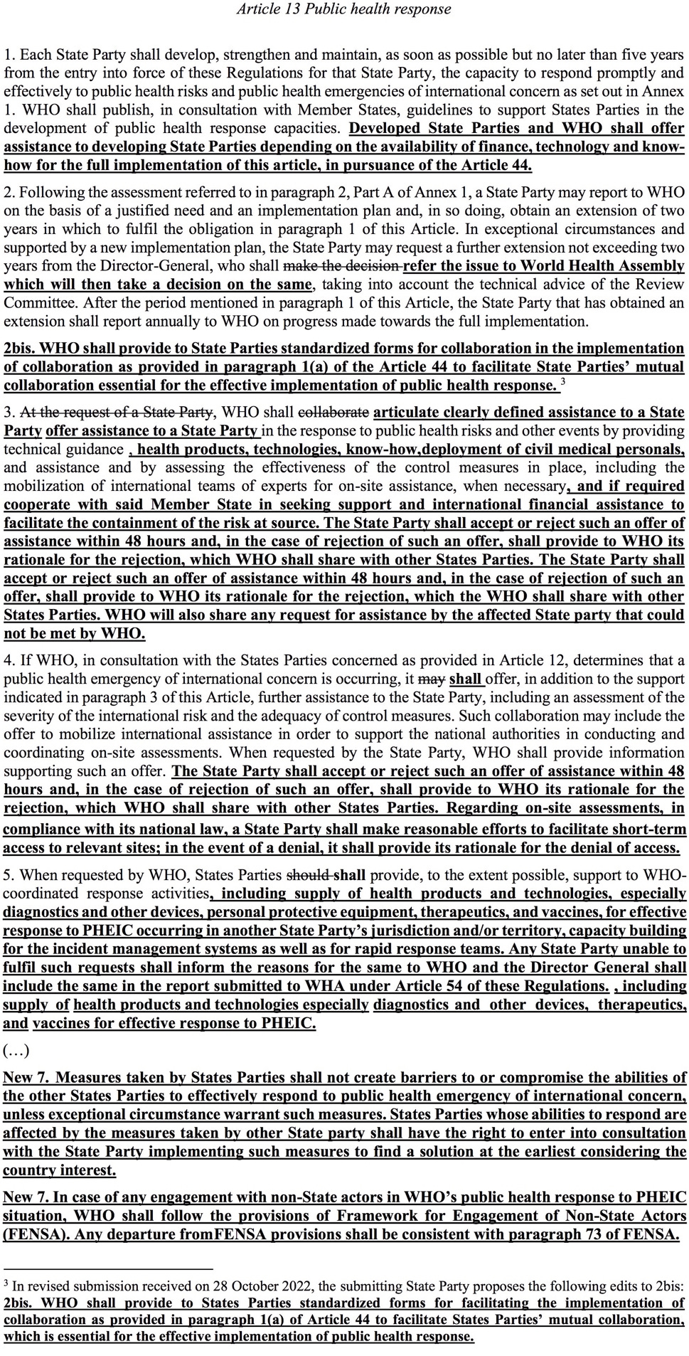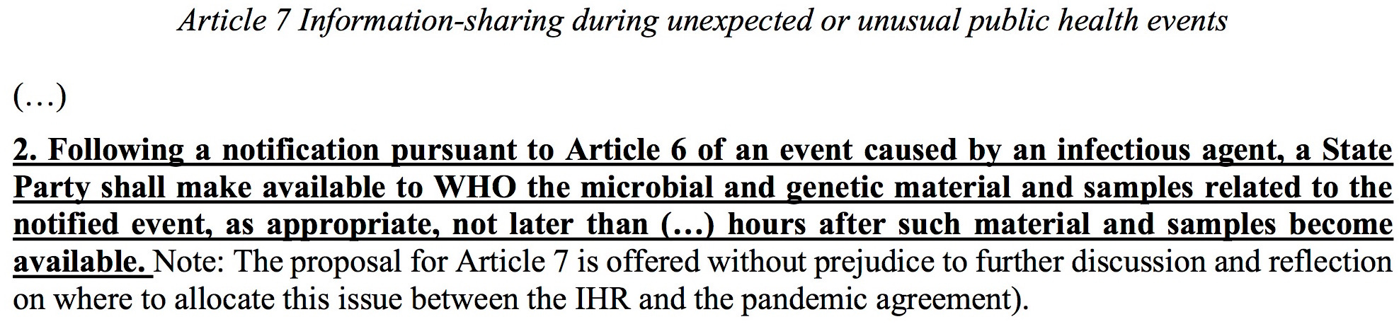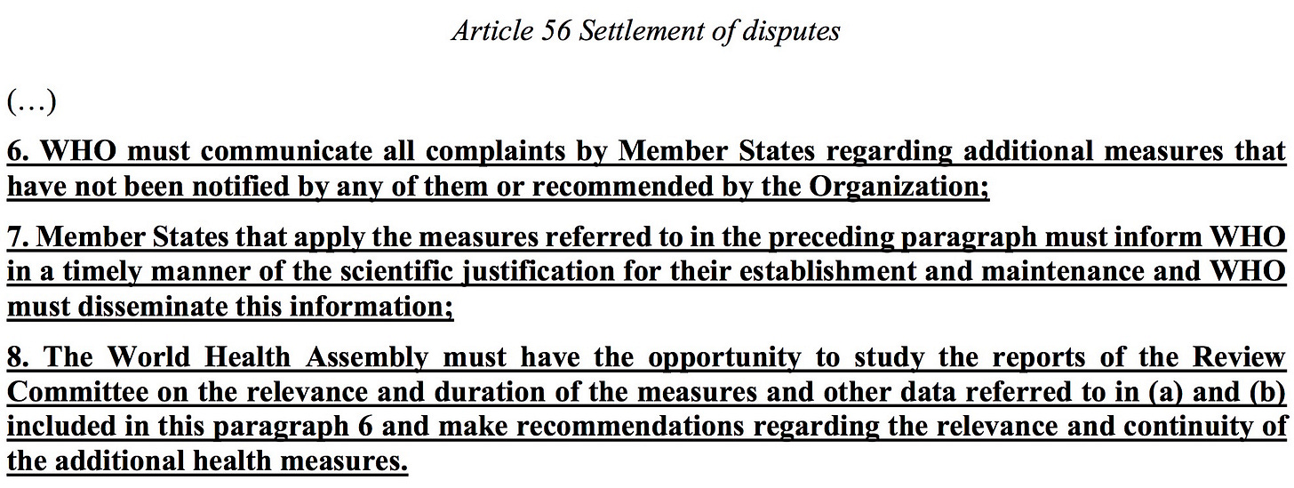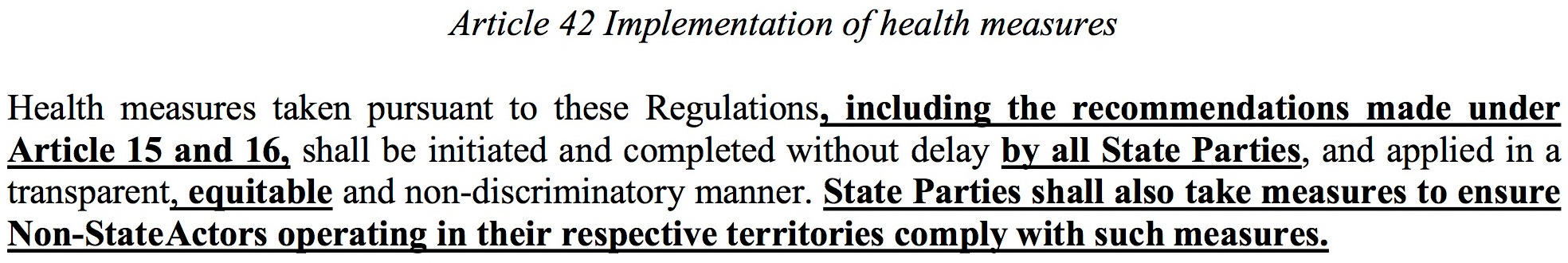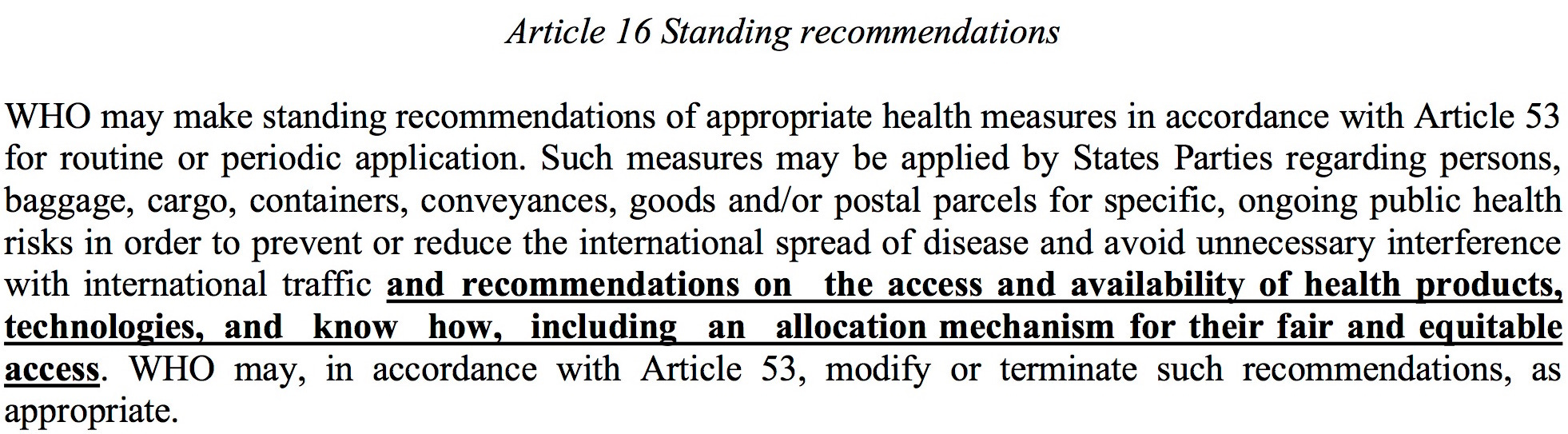 The proposed changes to the first principle in Article 3 of the International Health Regulations pretty much says it all. If adopted, they would strike out the following text: