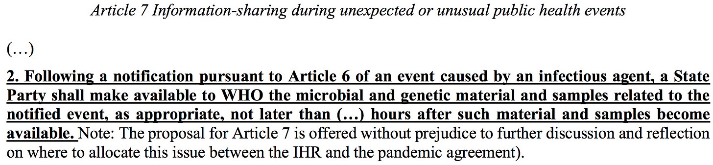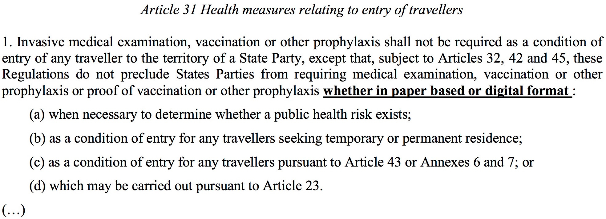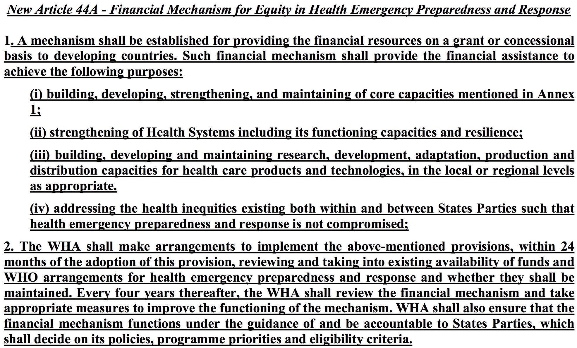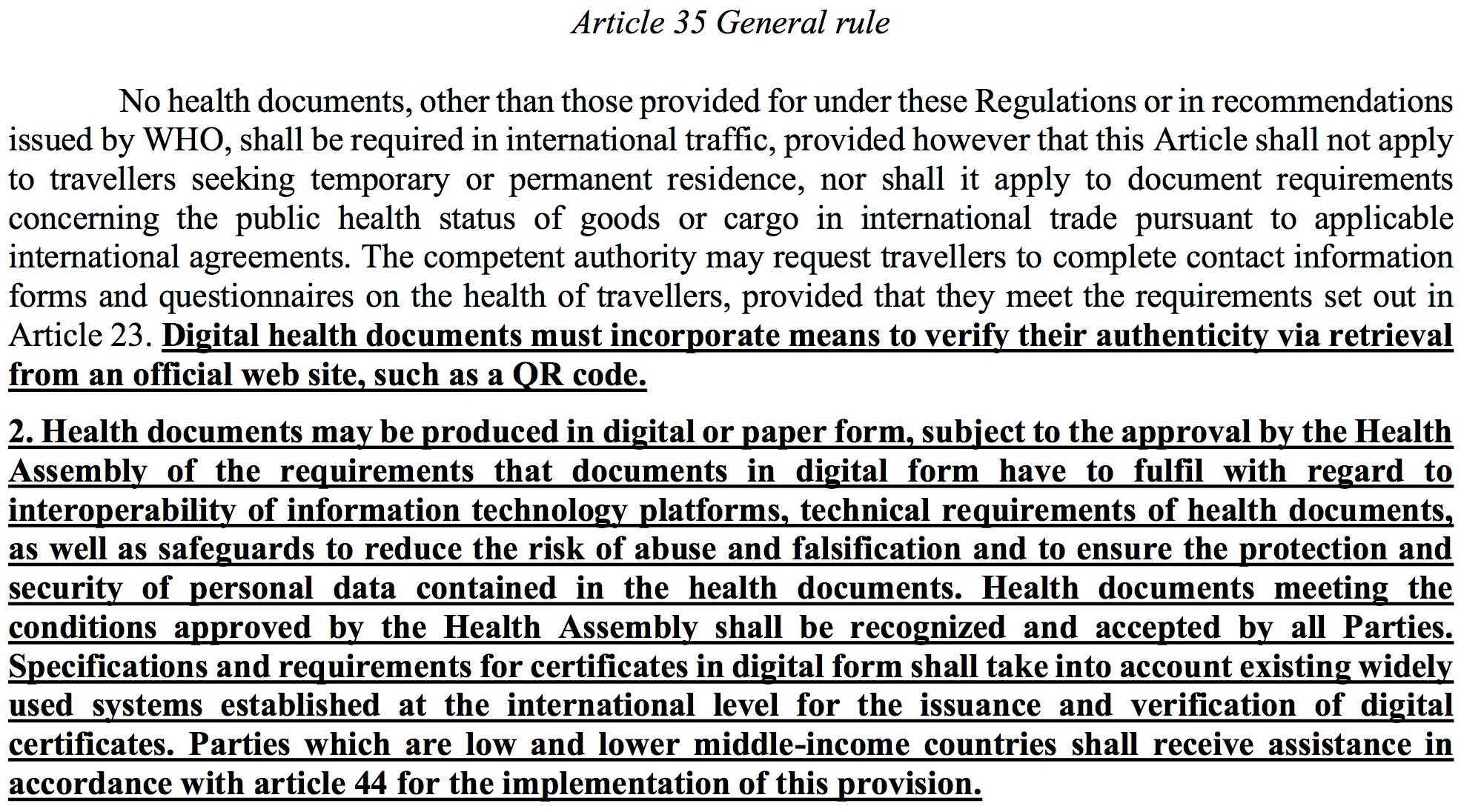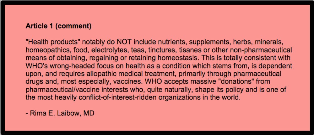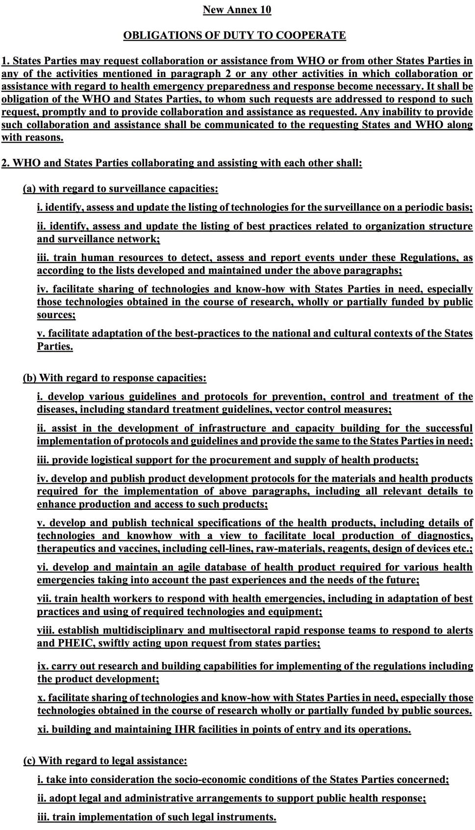 The proposed changes to the first principle in Article 3 of the International Health Regulations pretty much says it all. If adopted, they would strike out the following text: