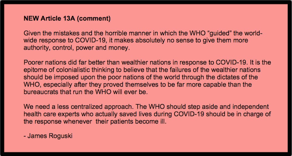 Please visit http://ThePeoplesAmendments.com to see what the United States delegation to the WHO should have proposed as an amendment to Article 3 of the International Health Regulations.