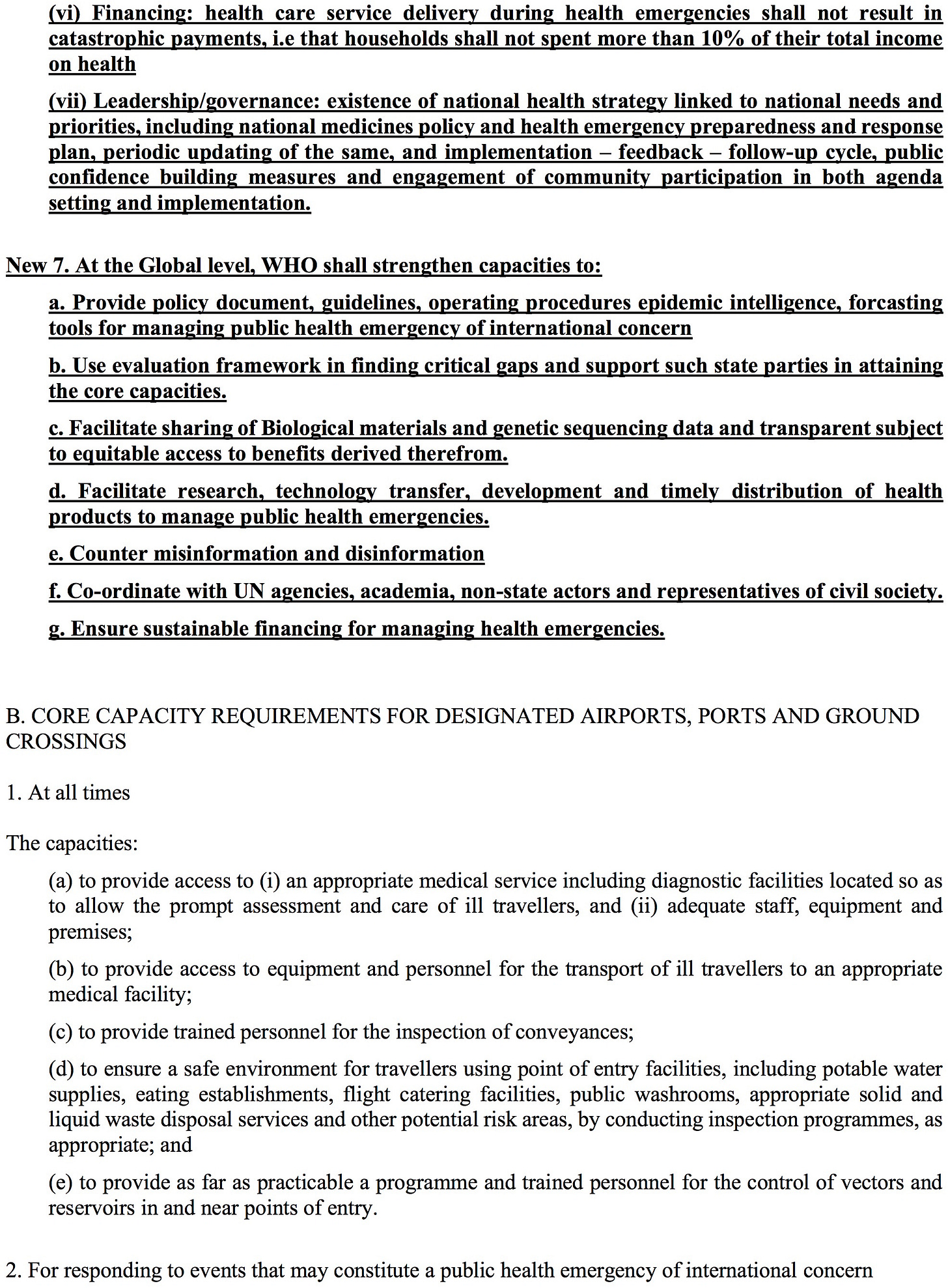 THE PROPOSED AMENDMENTS TO THE INTERNATIONAL HEALTH REGULATIONS ARE BELOW.