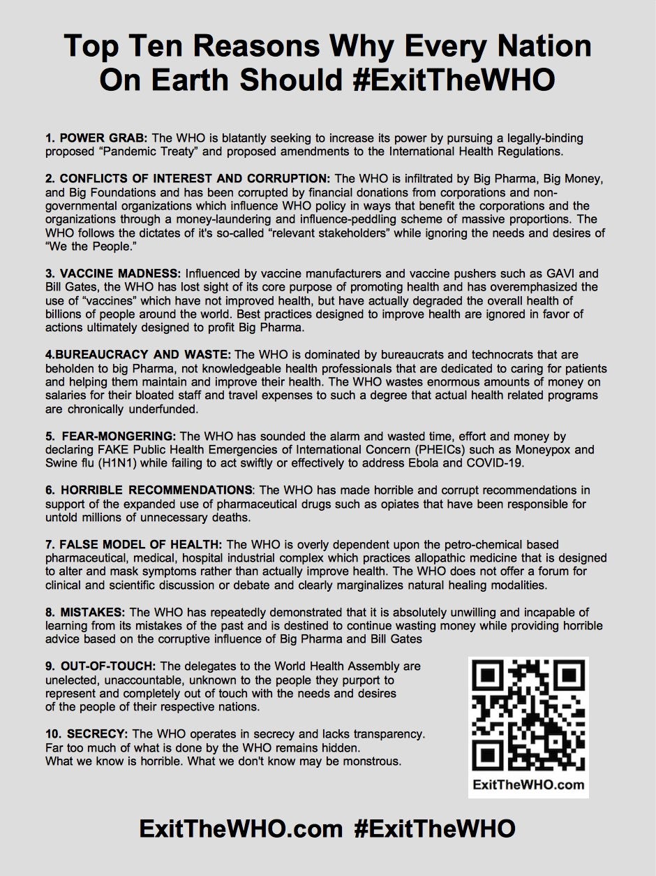 ACTION 13: Sign the Petition to Exit The WHO (Global).