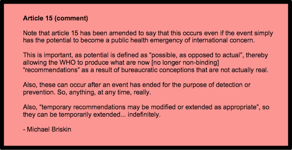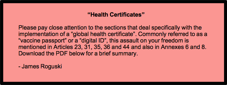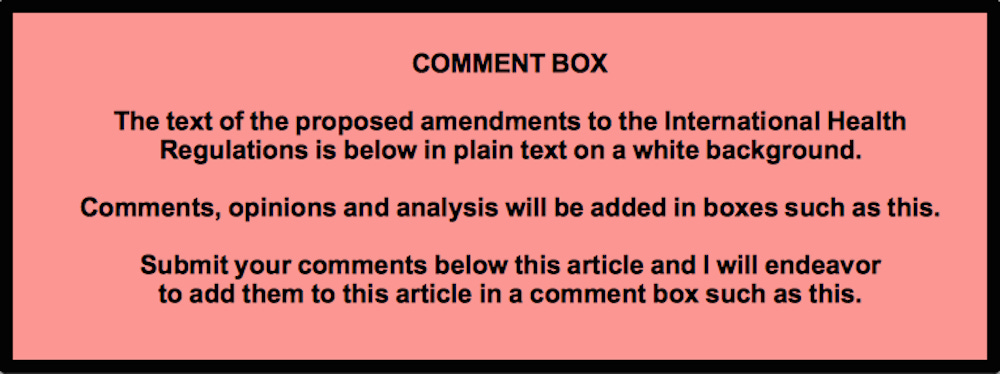 ACTION 1: Scroll further down in this article and read the proposed amendments to the IHR. Feel free to comment and I encourage you to record your opinions on video and post the links in the comment section.