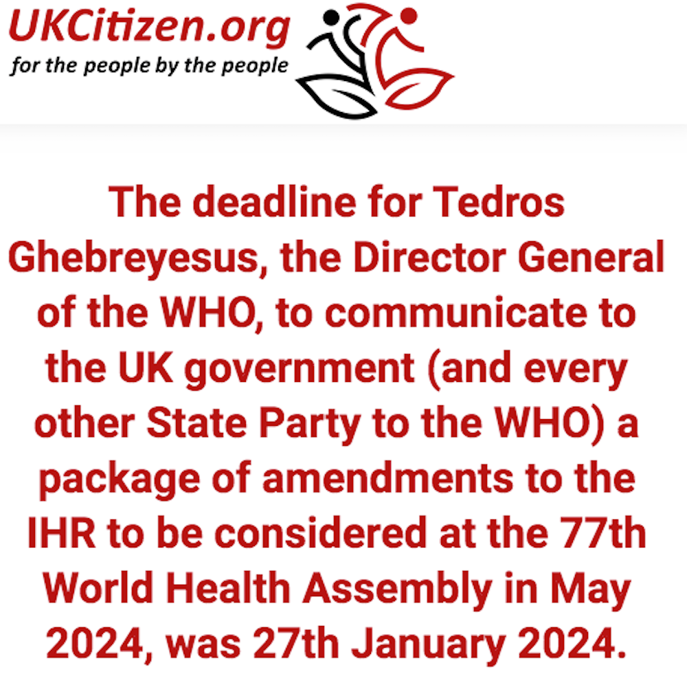 We understand that the IHR Working Group anticipates a final text being settled only during April or possibly even into May, but there remains no official deadline for it to publish that final text. It refuses to confirm what the documents say, and it refuses to say when it will reveal those documents. If any further evidence were needed of the disregard and disrespect for democratic process and the sovereignty of national parliaments now alleged of the WHO, then surely this is it.
