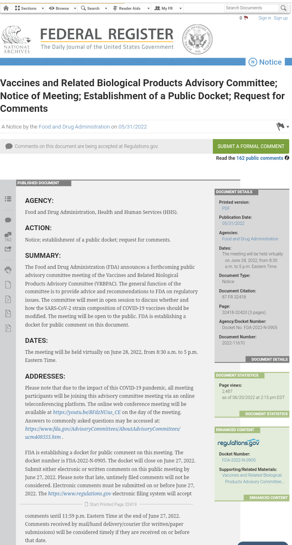 On Tuesday, June 28, 2022, the FDA will hold a meeting of the Vaccine and Related Biological Products Advisory Committee (VRBPAC).
