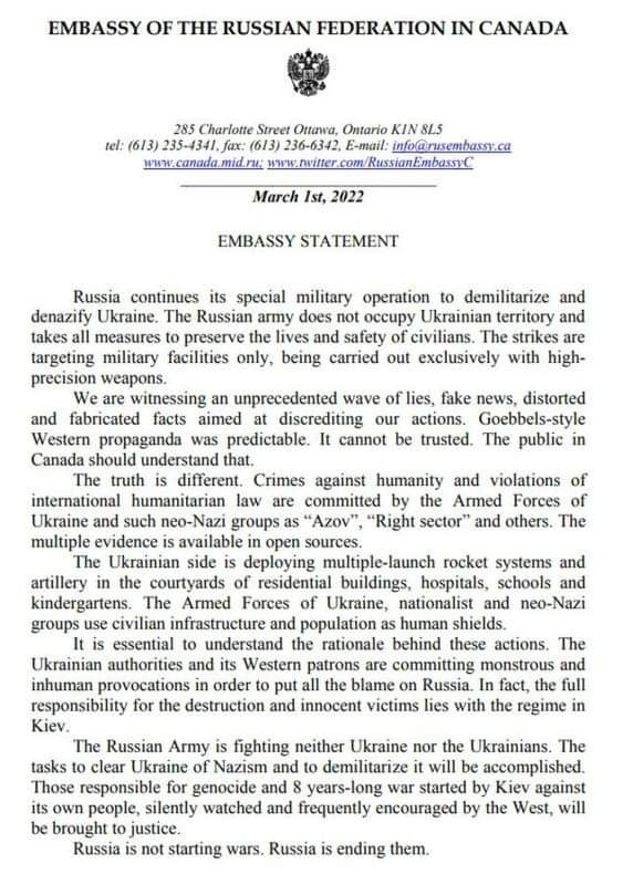 The Ukrainian side have to publish this statement in Ukrainian and Russian languages in Ukrainian media by 03:00 a.m. (Moscow time) on March 8, 2022.