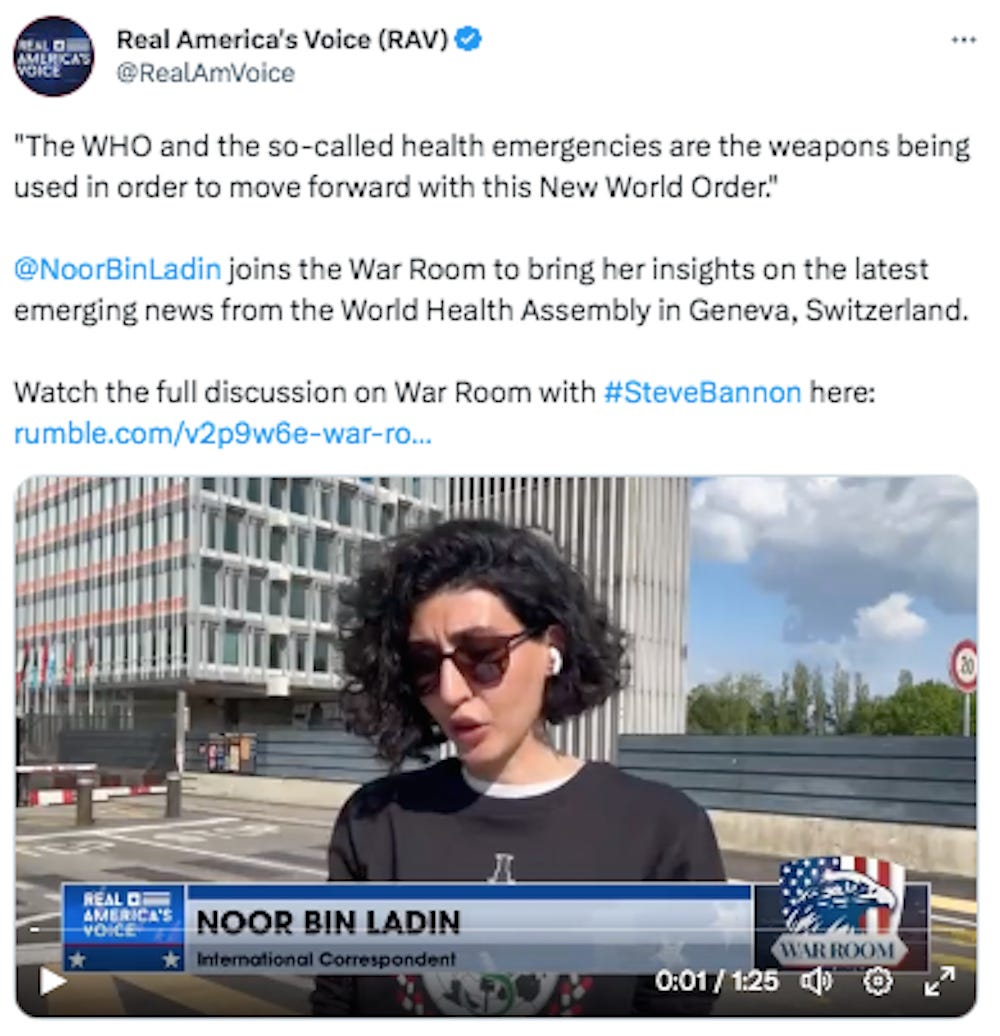 I would like to give a personal “shout out” to Noor Bin Ladin and Nick F. Cerutti for their efforts in opposition to the World Health Organization.