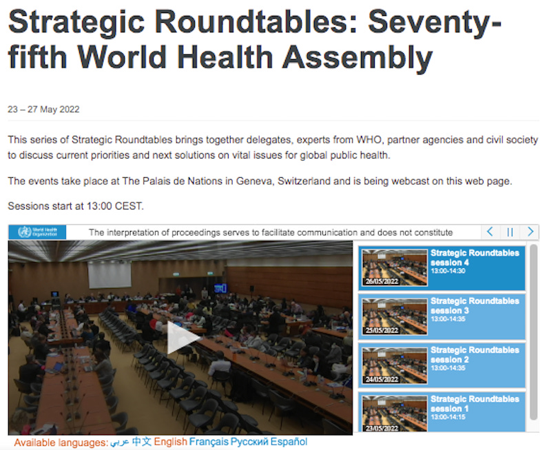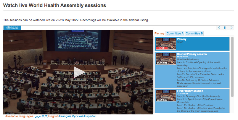 The World Health Assembly is being livestreamed and recorded from May 22-28 2022. This is a request for everyone to help analyze and report on the proceedings.