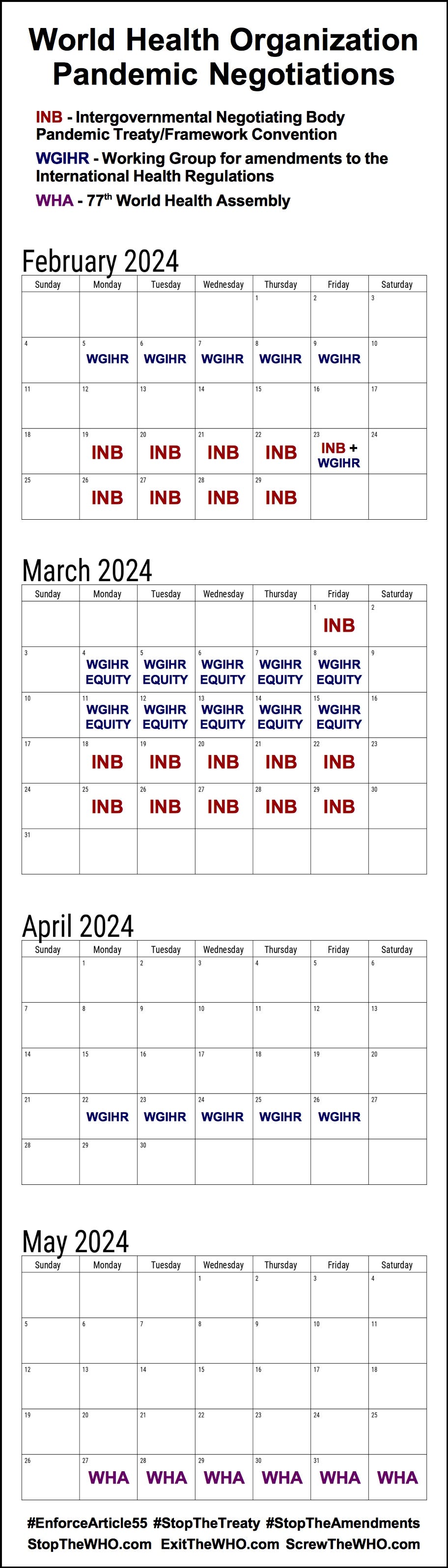 The Working Group for amendments to the International Health Regulations missed their deadline to officially submit a package of amendments back on January 27, 2024. They must not be allowed to blatantly violate international law.