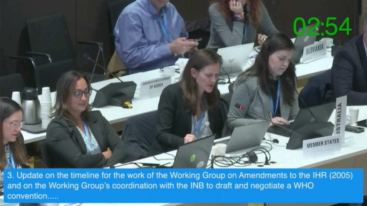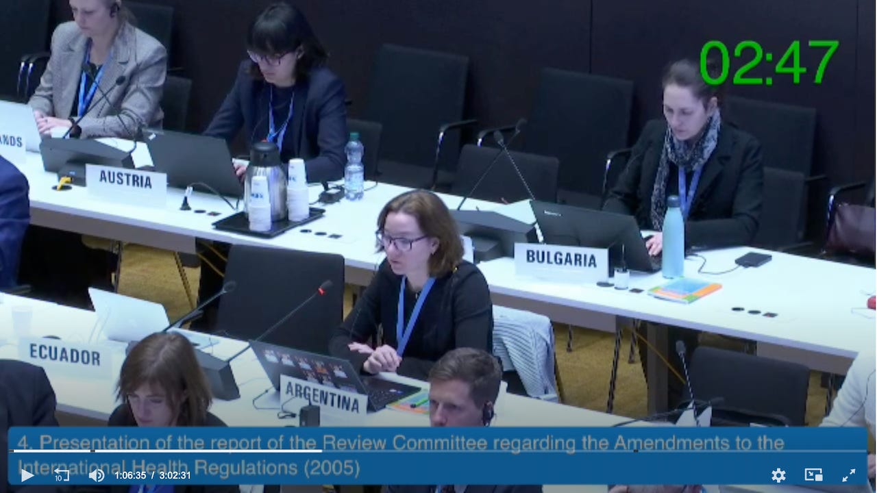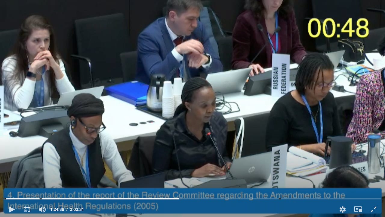 The screenshots below are from the 4 recorded videos from the second meeting of the Working Group on amendments to the International Health Regulations. The videos are available here:
