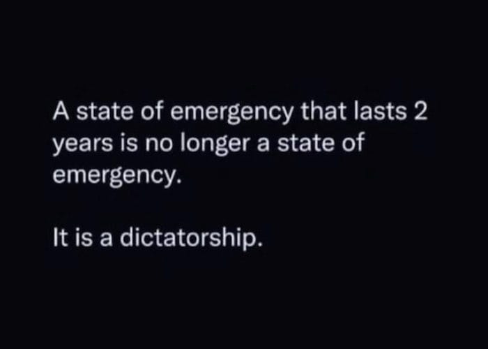 Congress IS OBLIGATED BY LAW to debate and vote twice a year on whether or not to terminate or continue these 40 different active national emergencies. They continue to fail miserably in performing their fundamental duty of representing the will of “We The People.”
