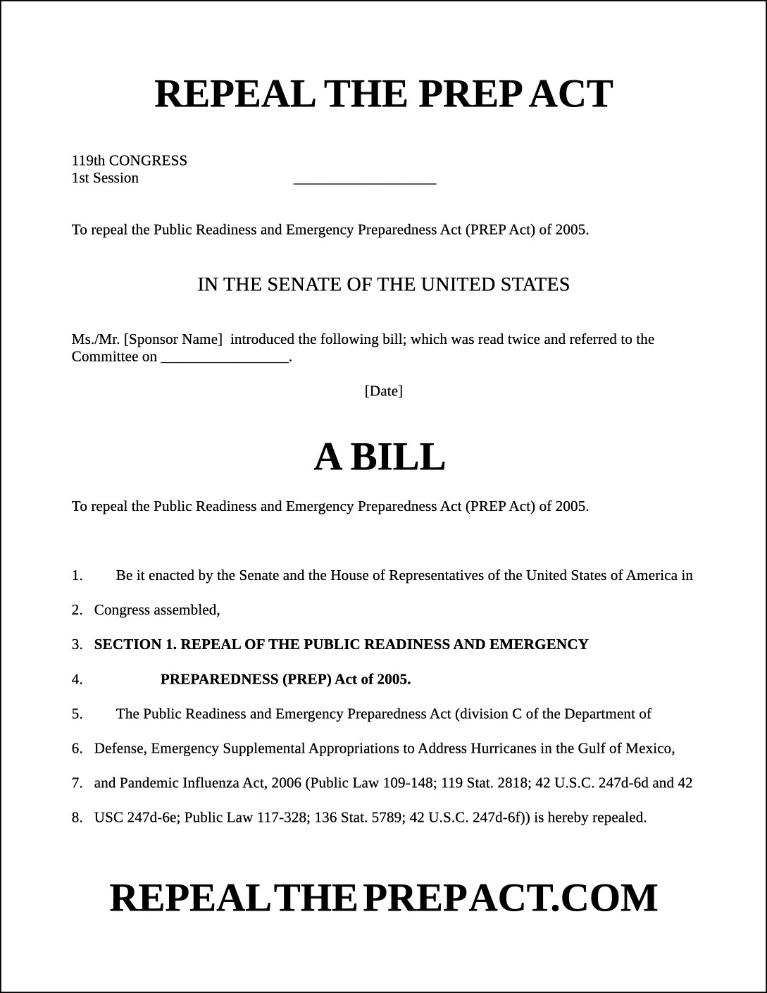 Congress must pass simple legislation to REPEAL the unconstitutional PREP Act in order to protect the unalienable rights that the PREP Act clearly violates.