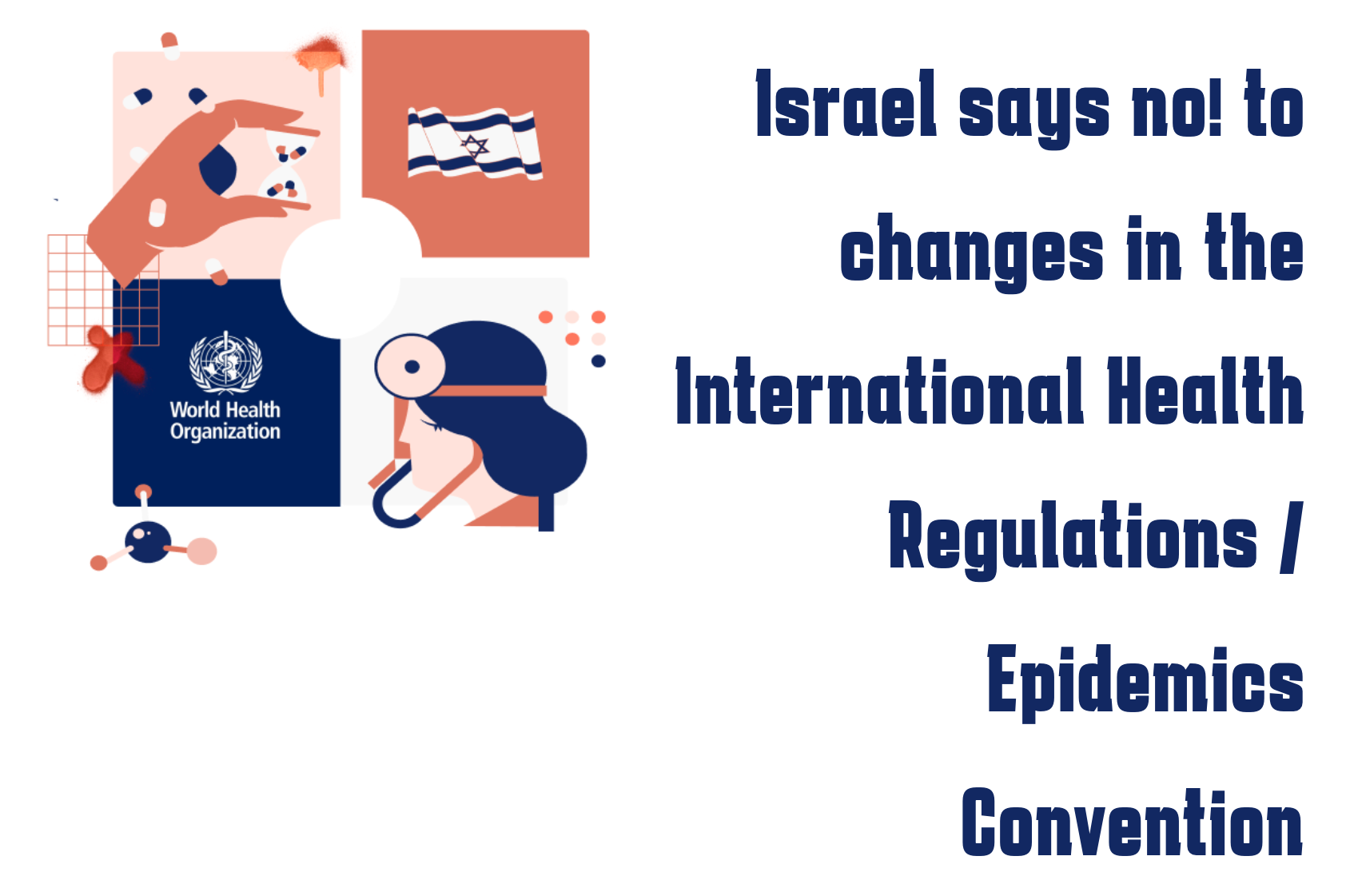 1. Preventing compromising the sovereignty of Israel, to ensure that the national law, including the policies and the decisions of the different ministries will prevail over the WHO's external regulations.